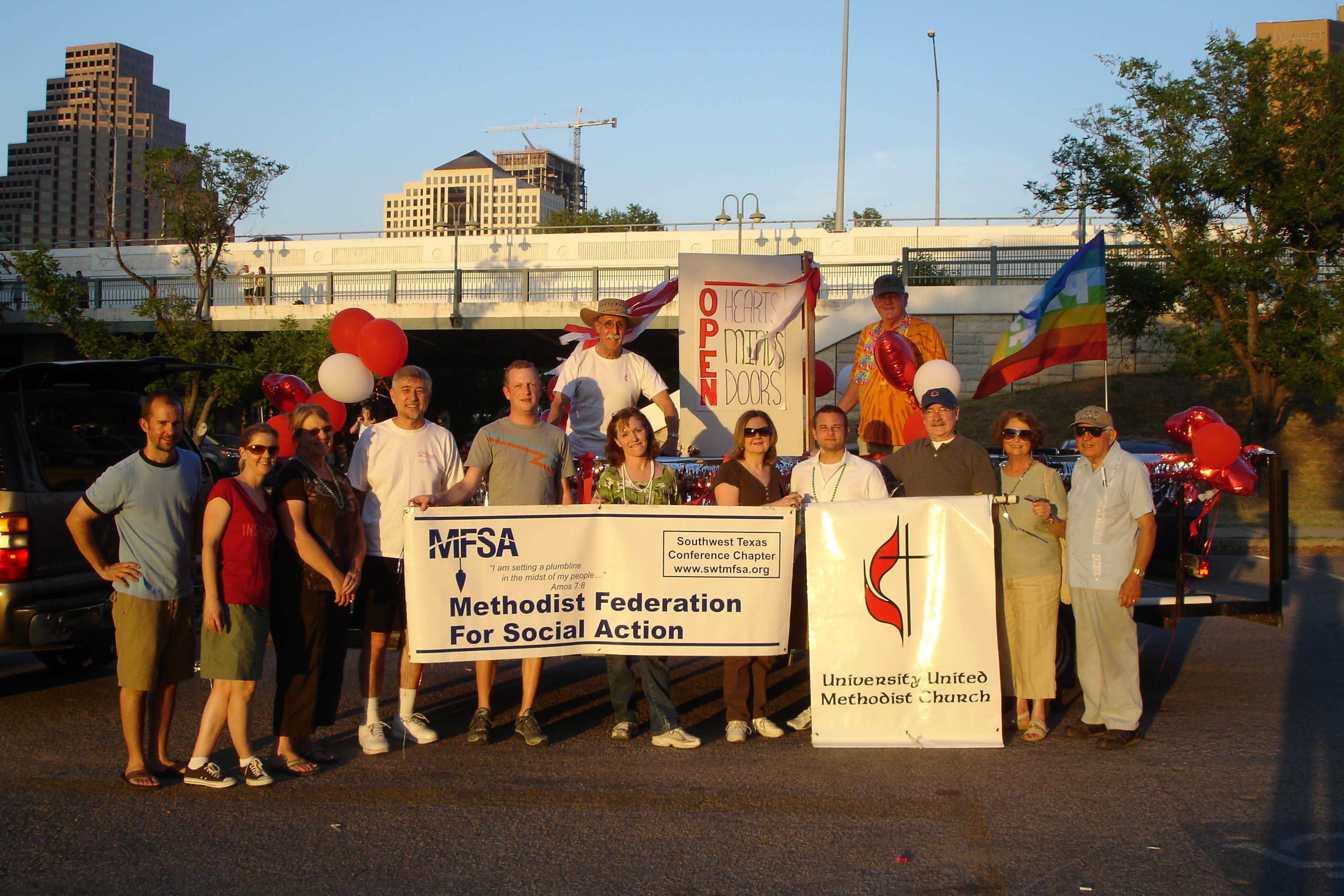 Please join the Methodist Federation for Social Action and fellow United Methodists as we walk in the 2011 Austin Pride Parade at 10 a.m. on Saturday, September 10. Walkers will wear our rainbow stoles in support of full inclusion of LGBT persons in the United Methodist Church and in society. We will join with members of First, Grace, St. John’s, Trinity, University, and other area Methodist churches to show our support. A convertible will be available for anyone who would like to ride in the parade. A group will be meeting at Saint John’s at 8:30 a.m. to carpool downtown. If you want to meet us at the west side of South First and Riverside, where the parade begins, please try to be downtown by 9:15 a.m. Parking is available in the Palmer Events Center Parking Garage located between Riverside Drive, South First Street and Barton Springs Road just south of Lady Bird Lake in downtown Austin (cost: $7.00 per car). If you are interested in participating in the Pride Parade or carpooling from St. John’s, email Rowland Curry at rcurry@austin.rr.com. See a map of the event at http://austinpride.org/web/wp-content/uploads/2011/08/Parade-and-Run-route.pdf.